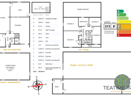 Maison Individuelle dans un environnement CALME - Scaer 29390 - 130 m²Leclerc de Scaer Ã? 4 minutes, Rosporden (29140) est Ã? 15 min et Quimper (29000) Ã? 30 min.____Imaginez-vous dans une maison individuelle spacieuse et lumineuse parfaitement au calme Ã? la campagne Ã?©loignÃ?© de tout Ã?©levage, nichÃ?©e dans un cadre verdoyant avec une vue imprenable sur un parc. Cette propriÃ?©tÃ?©, construite en 1966 et rÃ?©novÃ?©e en 2021, allie le charme de l'ancien (CheminÃ?©e insert) avec le confort moderne (Pompe Ã? chaleur).____Avec ses 130 m² habitables rÃ?©partis sur deux niveaux, cette maison offre un sÃ?©jour-salle Ã? manger spacieux de 37 m², parfait pour des moments conviviaux en famille ou entre amis.Cette grande piÃ?¨ce donne sur un salon avec en dessous la cave. La cuisine indÃ?©pendante est un vÃ?©ritable atout pour les amateurs de gastronomie. Les ouvertures en PVC/aluminium et les portes Ã? double vitrage garantissent une isolation optimale et une tranquillitÃ?© absolue.Un garage-chaufferie pourra acceuillir une voiture ou servir d'atelier. Un WC indÃ?©pendant.A l'Ã?©tage le dÃ?©gagement avec placards dessert quatre chambres dont l'une avec balcon qui promettent des nuits paisibles et des rÃ?©veils ensoleillÃ?©s grÃ?¢ce Ã? son exposition sud. Une salle d'eau rÃ?©cente.Le grenier sur dalle bÃ?©ton de 36 m² (Carrez) est amÃ?©nageable.____Le Parc de 5000 m², vÃ?©ritable havre de paix, vous invite Ã? profiter des beaux jours en plein air et pourra accueillera un beau potager.Un hangar d'environ 410 m².____SituÃ?©e Ã? seulement 5 minutes en voiture des commoditÃ?©s essentielles comme le Leclerc, une crÃ?¨che, des Ã?©coles maternelles et Ã?©lÃ?©mentaires, cette maison est idÃ?©ale pour les familles. Ã?€ 10 minutes en voiture, vous trouverez des restaurants, un collÃ?¨ge, un hÃ?´pital et des mÃ?©decins gÃ?©nÃ?©ralistes.____Travaux de rafraichissement et d'Ã?©lectricitÃ?© Ã? prÃ?©voir.____Ne manquez pas l'opportunitÃ?© de faire de cette maison votre nouveau nid douillet. Contactez-nous dÃ?¨s maintenant pour une visite.Honoraires Ã? la charge du vendeur. Classe Ã?©nergie E, Classe climat B Montant estimÃ?© des dÃ?©penses annuelles d'Ã?©nergie pour un usage standard : entre 2220.00 ââ??¬ et 3060.00 ââ??¬ sur les annÃ?©es 2021, 2022 et 2023 (abonnements compris). Les informations sur les risques auxquels ce bien est exposÃ?© sont disponibles sur le site GÃ?©orisques : georisques.gouv.fr. Votre conseiller TEATIME IMMO : David Le QuellecAgent commercial (Entreprise individuelle) RSAC 805 130 671 RSAC Quimper RCP 129 224 163 A 001